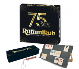 Rummikub 75 Years Anniversary Edition is launched to celebrate this remarkable journey. This limited edition features newly designed3-tiered racks and easy-to-handle tiles, and comes witha Tile Bag printed with 75 Years Anniversary logo and a beautiful Rummikub KeyChain. Truly a collectible commemorativeedition!